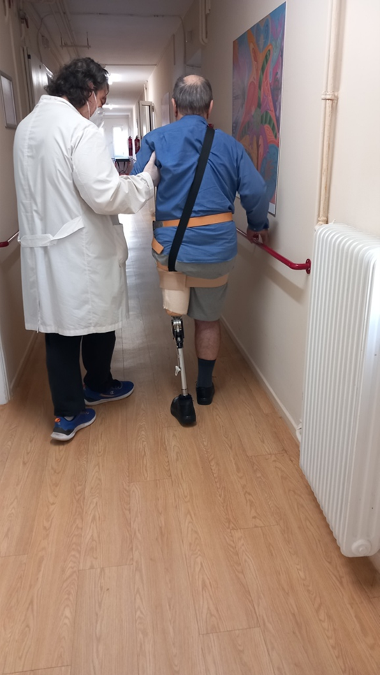 Η οικονομική προσφορά που λάβαμε, προωθήθηκε με το σχετικό αίτημα δαπάνης στην κεντρική υπηρεσία και με την σχετική έγκριση ξεκίνησε η διαδικασία μέτρησης, κατασκευής και προσαρμογής του τεχνητού μέλους. Σήμερα έχουμε καταφέρει να είναι το τεχνητό μέλος προσαρμοσμένο και τοποθετημένο στον κ. Μ.Ι. και να γίνεται καθημερινή εκπαίδευση και υποστήριξη από τον φυσικοθεραπευτή της μονάδας για την ασφαλή και ανεξάρτητη βάδισή του.